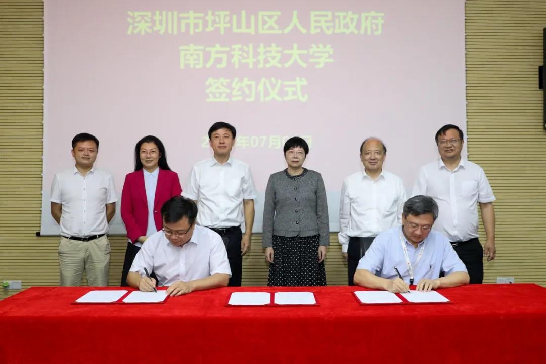 【香港商報網訊】記者 焦家志 報導:為搶抓粵港澳大灣區和深圳先行示範區「雙區」建設的重大歷史機遇,強化深圳產學研深度融合的創新優勢,在粵港澳大灣區國際科技創新中心建設中發揮關鍵作用,促進生物醫藥產學研合作。7月9日,深圳市坪山區人民政府與南方科技大學簽訂《深圳市坪山區人民政府與南方科技大學合作協議》,旨在共建南科大坪山生物醫藥研究院。坪山區委書記陶永欣,區領導沈華新、彭堯,南方科技大學黨委書記郭雨蓉,校長陳十一(中國科學院院士),代理副校長趙予生,生物醫藥研究院院長張緒穆等出席簽約儀式。