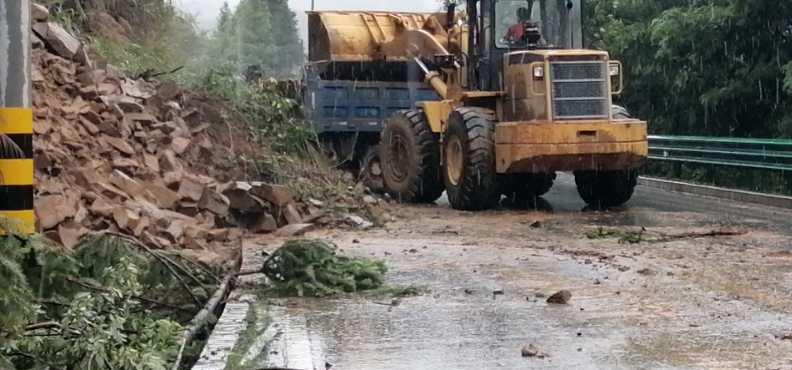 7月7日早上6時,搶險人員分為三組。分別趕赴G330線水東段邊坡、三口段再次塌方覆蓋了全幅路面處及興嶺隧道開展搶險工作。經過一天的奮戰,恢復了公路通行。