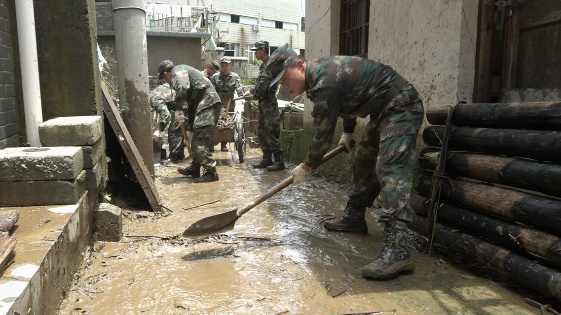 蘆溪鄉奇口村倒湖組地處祁門縣閶江河的最下游,是受洪災比較嚴重的地區之一,該組90餘戶村民大部分家中被淹,一些老舊房屋倒塌,道路、農田等基礎設施損壞嚴重。災情發生後,民兵預備役黨員骨幹與駐軍部隊、消防大隊官兵火速馳援,清除村中道路上的淤泥垃圾,幫助群眾整理、清洗被淹物品,打掃庭院消毒殺菌。