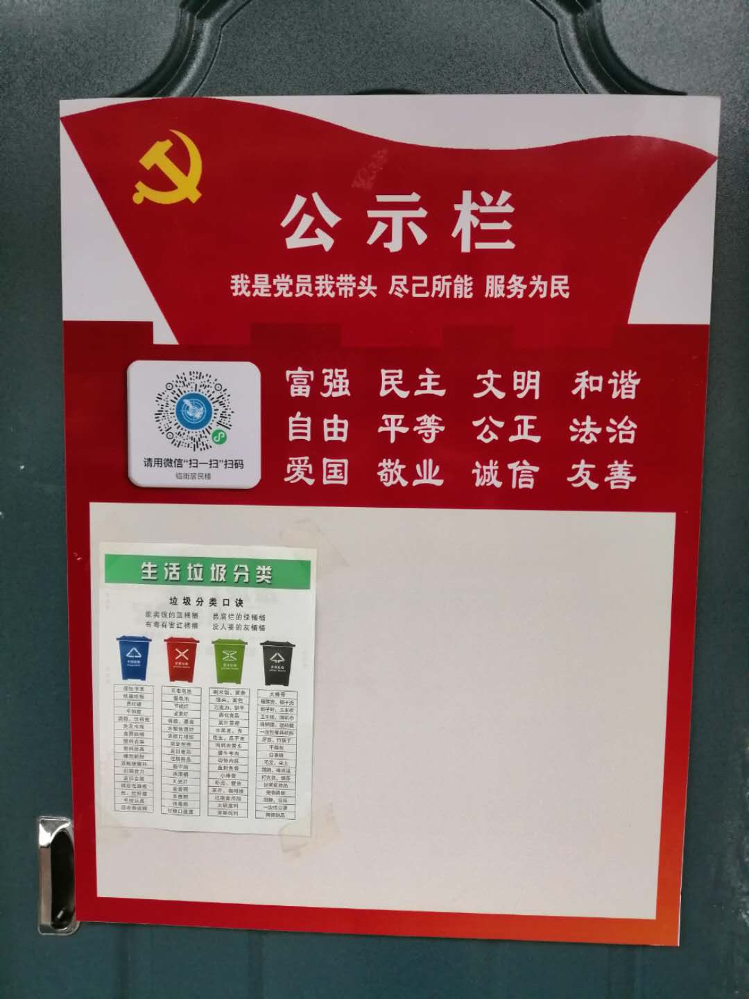 集成防疫創城雙元素。按照防疫和創城工作需要,為切實推動防疫政策和創建文明城市家喻戶曉,在公示板中添加了黨建引領、城市二維碼、24字核心價值觀等當前多重任務元素,可謂一板多能,將宣傳融入到各防疫卡點、小區樓道,有力推進防疫和創城常態化。