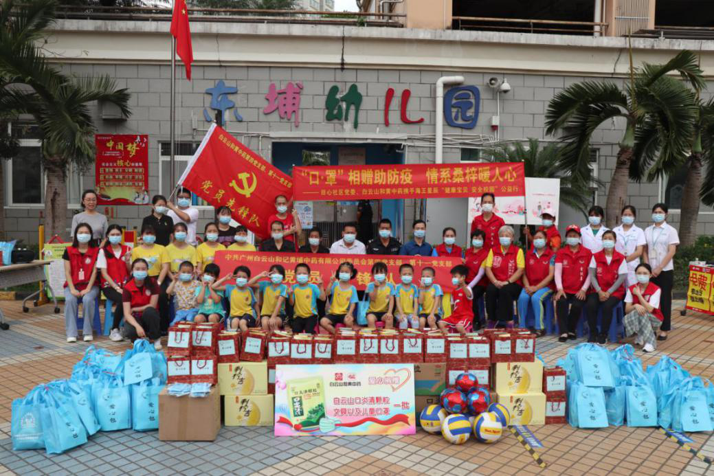 鑒於此,7月9號,田心社區黨委聯合白雲山和黃中藥深圳海王星辰連鎖在東埔福苑幼兒園開展「口罩相贈助防疫,情系桑梓暖人心」活動。東埔幼兒園師生收到愛心物資,包括口罩2000隻、口炎清300包以及學生體育用品一批。