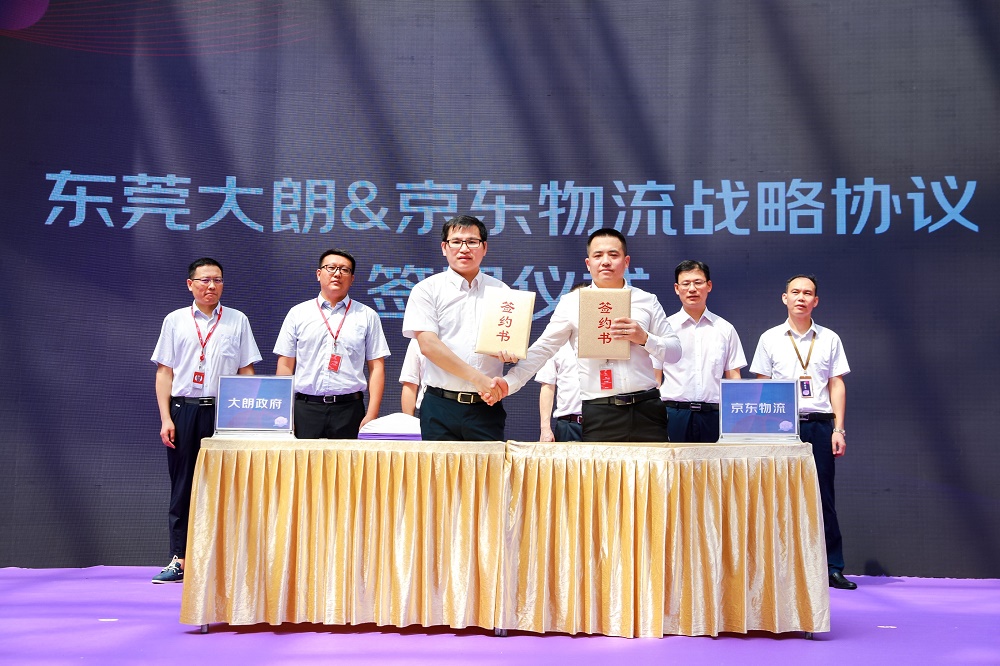 在啟動儀式上,京東物流集團戰略與創新研究院,產業數字化高級總監代永勝給影之火文化傳媒(東莞)有限公司授予了《京東物流供應鏈大朗產業基地》牌匾,代表京東物流供應鏈大朗產業基地正式落成。隨後,大朗鎮副鎮長曾悅與京東物流代表代永勝簽署了戰略合作協議。「產地京品 鏈上好物」—2020東莞大朗產業帶直播節亦在現場啟動。