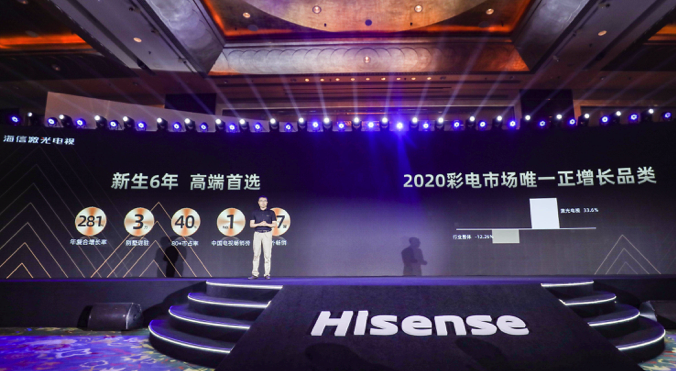 據悉,上市六年來,海信激光電視年複合增長率高達281%,進駐別墅家庭超過3萬個,是名副其實的大屏高端消費首選產品。2019年,海信激光電視在80+市場佔有率近40%,海信80寸激光電視80L5更是成為電視暢銷榜排名第一產品。在海外,美國、墨西哥、澳大利亞、迪拜、南非、英國、法國等全球17個國家都有激光電視銷售。中怡康2020年1-6月線上線下整體推總數據顯示,彩電行業整體銷量同比下滑12.26%,海信激光電視銷量逆勢上漲33.6%,成為彩電市場唯一正增長的產品品類。