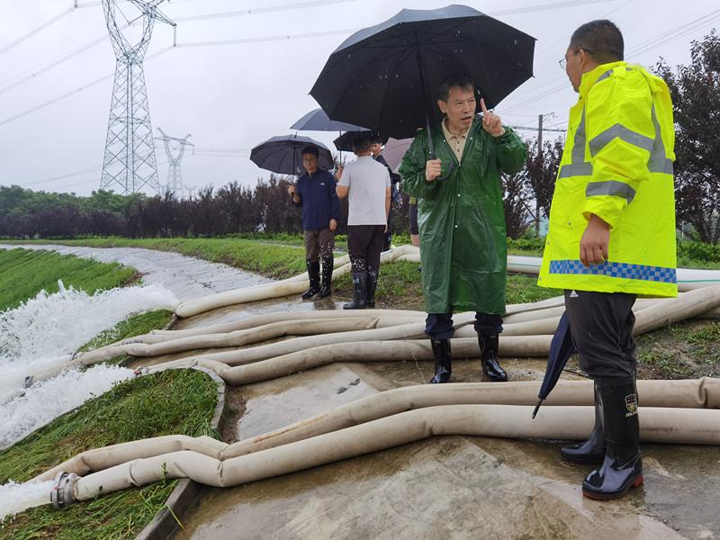 在桃源小區,秦遠望仔細查看大雨受損點位加固情況,要求錦繡社區組織人員,在確保人身安全前提下,加快明溝漂浮物清理保障排水通暢。在蓬萊路、雲谷路積澇點,秦遠望現場調度泵站搶險和人員物資轉移,要求相關部門協同作戰,加大排澇搶險力度,加強巡邏檢查和交通管制,嚴防次生災害。
