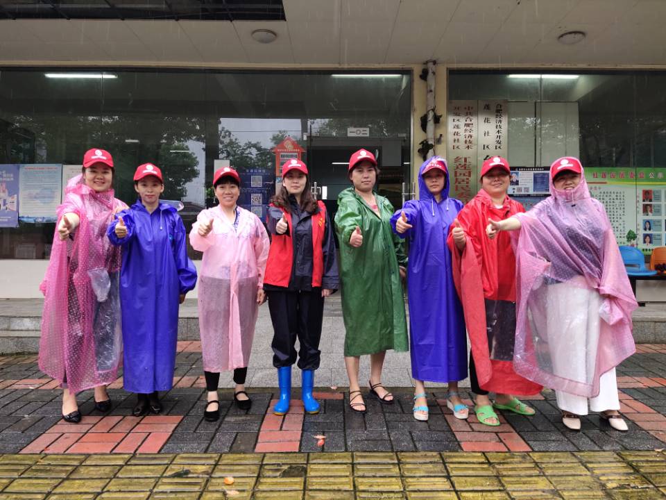 她們每隔兩個小時對小區8處易澇點、2個凹式下穿橋、1個泵站點、41個居民小區,一圈走下來就是10多公里。雨水伴着汗水,隊員的衣服幹了又濕。