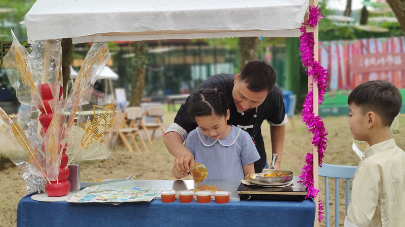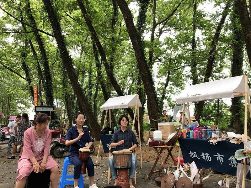 【香港商報網訊】7月18日,安徽黃山市徽州區西溪南濕地公園格外熱鬧,楓楊林下人潮湧動,一場有音樂、有美食、有創意的鄉村集市正式出攤開賣,精緻手工、糖畫、陶藝、美食、花藝……30多個攤位,各具特色,新奇有趣的文創產品,各色風味小吃、特色土產品琳琅滿目,吸引周邊近千名顧客駐足流連。