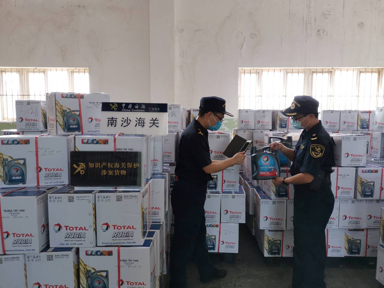 6月24日,廣州海關所屬南沙海關查驗關員在對一票申報出口至肯雅的貨物進行查驗時,發現貨物申報為「無品牌」的拉杆箱、連衣裙、褲子,實際卻是1497瓶標有「TOTAL」商標標識的機油。經聯繫確權,知識產權權利人道達爾股份有限公司確認上述貨物為侵權產品,向海關提出扣留該批貨物的申請。7月15日,南沙海關對該批侵權貨物依法扣留。
