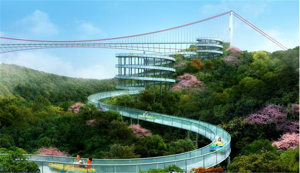 據了解,世茂集團攜手赫奕旅遊將於蓮花山世茂滑雪場打造世界最長玻璃懸索橋。其中玻璃橋528米,寬度3米,落差80餘米,投資7200萬,今年11月完工;高空漂流3000米,落差180米,投資2800萬,今年十一完工;七彩滑180米,四條滑道,投資600萬,今年十一完工。在橋面設計上,融入3D視覺效果和7D動感特效,通過聲、光、電、觸、感、聞、突等高科技特殊效果,使遊客體驗到空前的沉浸感。屆時,玻璃懸索橋也將融入到世茂滑雪場度假區的整體運營體系中,共同構成一個觀光、休閑、娛樂、度假、冒險等多維度體驗的度假區。