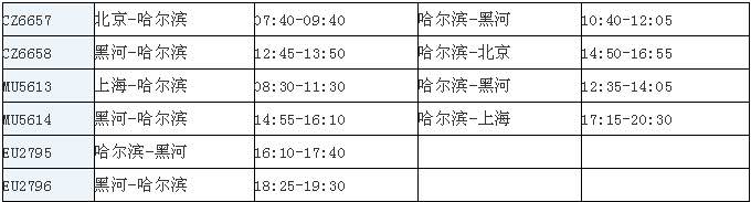 隨着疫情防控形勢趨於平緩,各條航線逐步恢復正常運行,停飛近四個月的成都航空公司哈爾濱—黑河航線已於6月1日復飛,南方航空北京—哈爾濱—黑河航線將於7月23日復飛,珠海航空公司珠海—鄭州—黑河航線將於8月中旬復飛。