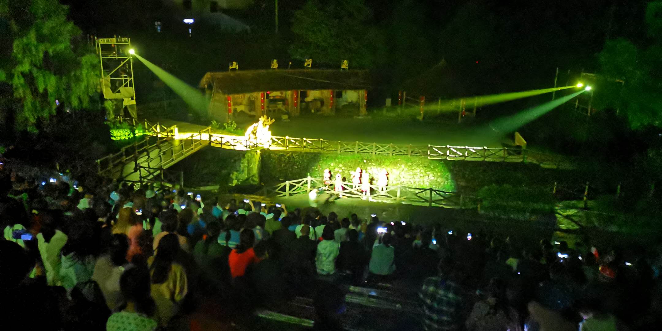 「僅僅有山和水是不夠的,我們還想讓遊客記住鄉愁。」為此,河魚鄉以城口優秀農耕文化為主線,將地方特色錢棍舞、採茶舞等傳統節目創新編排,形成以農耕文化為主題的「山戀·河魚」實景劇,緊緊抓住遊客「看得見山,望得見水,記得住鄉愁」的根與魂,引起遊客對鄉土文化的追憶和對傳統文化的共鳴。