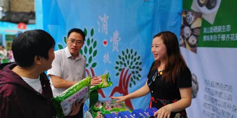 城口修齊鎮長李方元向遊客推介修齊花菇