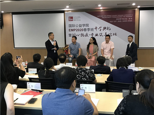 【香港商報網訊】記者 黃鳳鳴 報導:7月23日,國際公益學院國際慈善管理EMP2020年春季班開學典禮暨同心抗疫·專業築善論壇在深圳舉行。來自全國14個省市自治區的22個城市的45名新生參加開學典禮,這是國際公益學院在深圳舉行的第九次開學典禮,也是新冠疫情爆發以來,社會組織在實踐與思考中掀起如何應對疫情常態化的新篇章。7月23日晚,國際公益學院董事會主席馬蔚華教授與卓爾控股有限公司董事長、卓爾公益基金會創始人閻志,共同出席CGPI大講堂,就「可持續發展與企業家精神」進行對話。