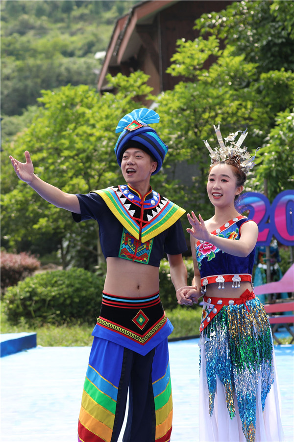 開幕式當天,彭水苗家兒女穿著節日盛裝,同唱嬌阿依,共舞踩花山。歌舞《苗鄉等你來》、苗族盛裝秀《心愛的彭水》、苗鄉對歌《我的嬌阿依》、苗族錦雞舞《清清阿依河》、苗族廣場舞《踩花山》,表達了苗家兒女在新時代對於美好未來的希望與祝願,民族歌舞展演、民俗文化展演、集體展示「一歌一舞」……給現場觀眾演繹了一場美輪美奐的視聽盛宴。