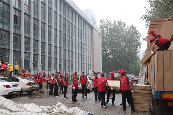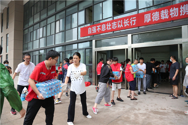 7月26日下午,工作人員和志願者來到合肥一中學術報告廳,現場劃定生活區、活動區、服務區等區域,隨後開始搬運物資。27日上午,9輛大卡車的安置物資全部進場完畢,包河區在1天內為安置群眾搭建了一個溫暖的「家」。