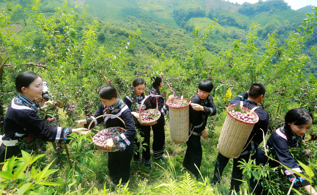 為有效破解群眾發展難題,促進農民脫貧致富,天峨縣把從當地野生李中選育出具有特晚熟、特優質的龍灘珍珠李作為扶貧支柱產業來整縣推進。在貧困戶種植方面,除給予苗木全額補助外,還給予最高達5000元的以獎代補資金和3-5萬元的扶貧小額信貸扶持,有效激發貧困戶發展生產積極性。同時,利用新型農業經營主體在資金、技術、信息、銷售渠道、服務保障、抵禦抗風險等方面的優勢,以農戶土地入股「底金+分紅+勞務收入」、農戶土地合作「農業經營主體+基地+農戶」模式,帶動農戶及貧困戶發展龍灘珍珠李產業。目前,全縣已培育出農業龍頭企業9家,成立有農民專業合作社253家、家庭農場251家,其中,有58家農民合作社、109個家庭農場專門發展龍灘珍珠李產業。