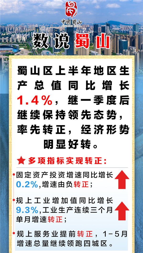 今年上半年,蜀山區地區生產總值同比增長1.4 %,連續第二個季度實現正增長,增長速度進一步加快,增速位居合肥市四城區第一。