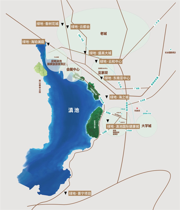 綠地·晉寧項目,為綠地香港初耕晉寧的開山力作,該項目落地標誌着綠地環滇池佈局形成完整拼圖。項目將依託晉寧區域獨特的自然資源,以及片區坐擁的盤龍寺文化資源,以主題運動、禪修、康養等特色產業為核心,計劃投資約200億元,打造佔地4050畝的大型標杆文旅項目,成為雲南省未來獨有的旅遊度假目的地。