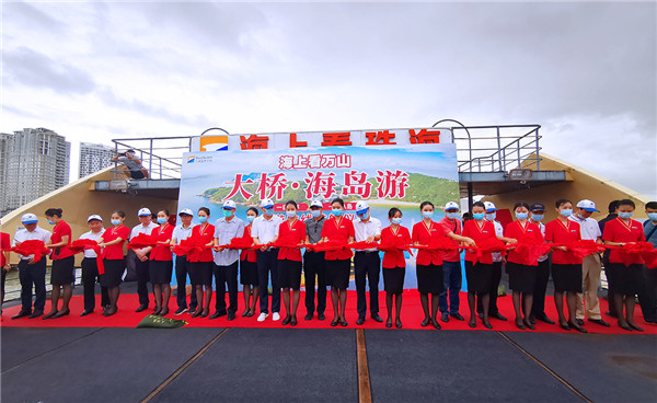 【香港商報網訊】記者 陸紹龍 報導:7月31日,珠海九洲控股集團旗下九洲藍色幹線公司推出「港珠澳大橋+萬山群島游」高端旅遊精品航線。該航線充分挖掘港珠澳大橋和珠海魅力海島的旅遊資源,以大橋為「軸」、海島為「珠」,「串珠成鏈」,有效串聯了「橋、海、山、灣」等得天獨厚的一體化城市和自然景觀資源,助力建設粵港澳大灣區海岸休閒觀光帶,帶動珠海全域旅遊發展。