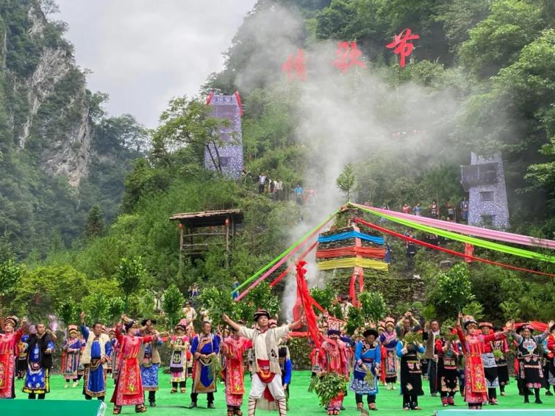 隨着夜幕降臨,青片鄉正河村的五龍寨熱鬧非凡,來自四面八方的遊客們紛紛圍坐在篝火旁,津津有味的觀看着獨有的羌族歌舞表演,感受羌族兒女的熱情。自入伏以來,青片鄉每天的遊客接待量就達到2000人以上。「遊客來到這個地方,白天觀賞自然風光,晚上可以感受羌族文化,讓大家在羌山,吃的開心,玩的滿意。同時也讓更多的客人了解我們民族民俗文化,讓他們切身地感受禹羌文化的特色氛圍。」青片鄉五龍寨正河民宿旅遊專業合作社負責人王蓉介紹道。
