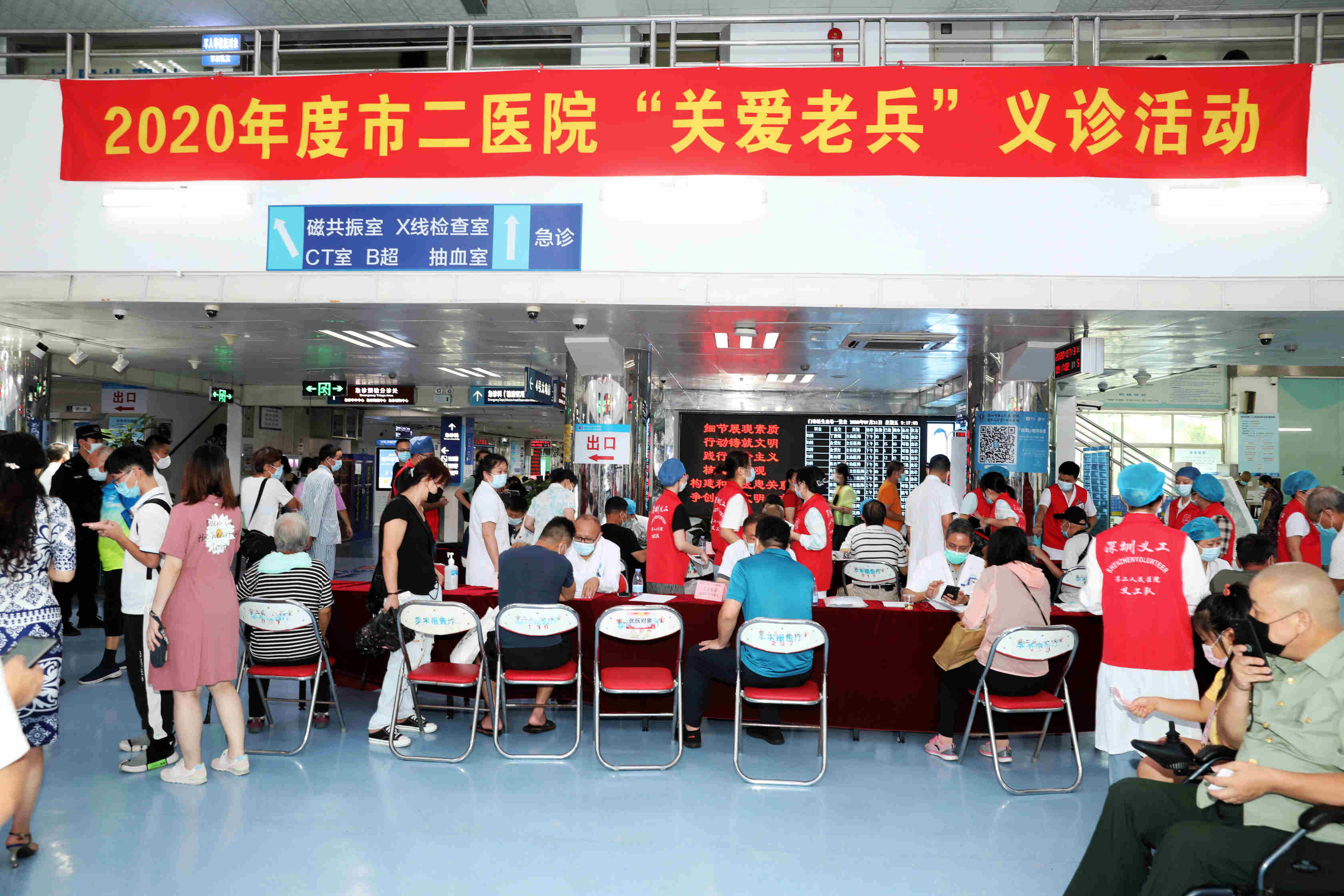 上午九點活動正式開始,聞訊趕來的社會各界退役軍人、優撫對象、市民朋友來到深圳市第二人民醫院門診一樓,來自心內科、呼吸內科、神經內科、內分泌科、神經外科、創傷骨科、脊柱外科以及全科的專家團隊在現場為大家進行義診諮詢服務。