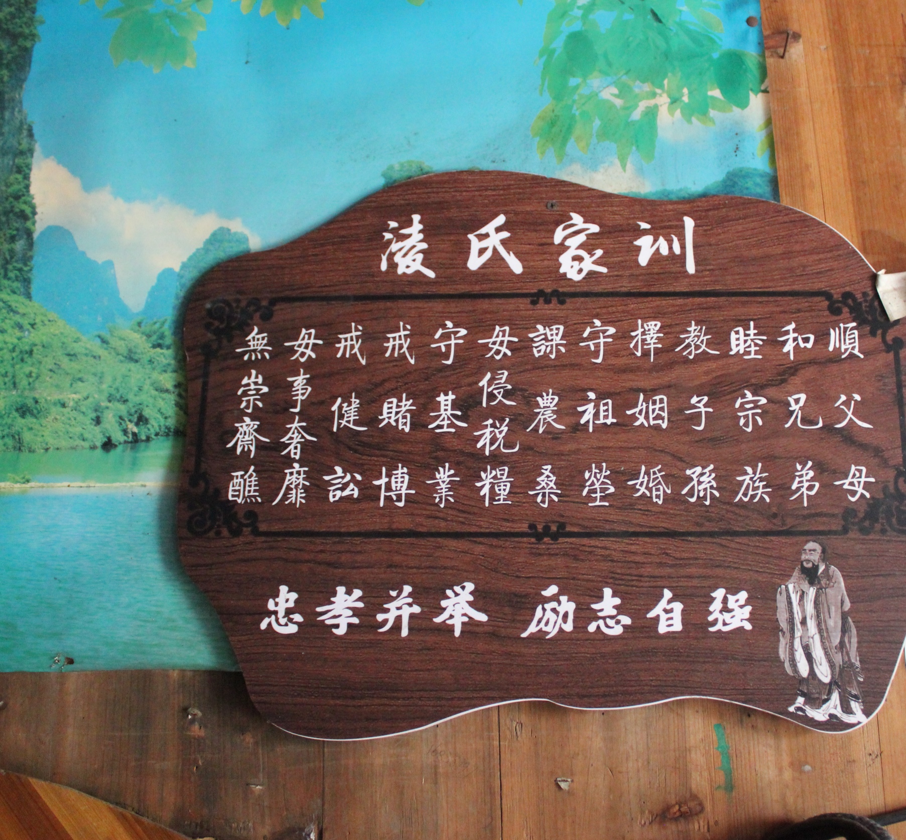 “我們這個榮譽牆都是我們磣溪村這些年考上大學走出去的大學生,這麼做就是希望能夠激勵孩子們好好讀書,做個對家庭、對社會有用的人。”溪口鎮磣溪村黨支部書記吳建設介紹道,“我們村雖然為非貧困村,但在推進脫貧攻堅工作中,高度重視淳樸家風、文明村風建設。”該村歷史文化厚重,擁有兩座古墓,即北宋忠烈英勇留守知府淩唐佐衣冠塚和清代乾隆年間兵部左侍郎淩右文之墓。在每戶貧困戶家中都可見“忠孝並舉 勵志自強”的《淩氏家訓》。