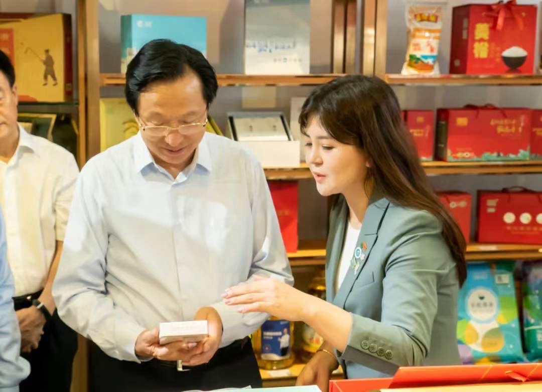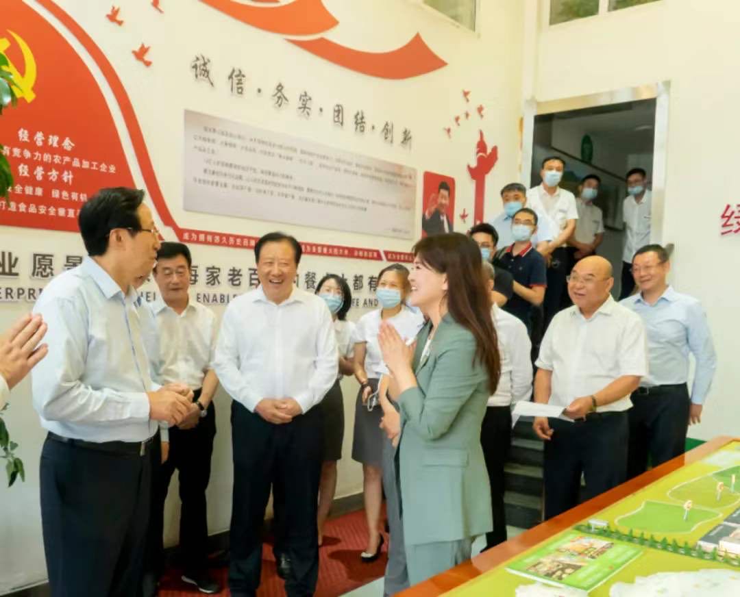 韓長賦一行深入了解公司的產業運營情況,詳細聽取了黑龍江省和糧農業有限公司董事長張芳在產業方向、產品種類、企業文化等方面的匯報,並參觀了雜糧生產車間、理化實驗室、種植基地遠程智能監控系統、和糧品控中心、產品展示中心、電商運營中心、新媒體直播中心等,從田間源頭記錄稻苗長勢,通過基地遠程智能監控系統實時監測、展示第一產業基地情況。當見到和糧品控中心,嚴格把控和糧的「進出管卡」,以高標準、嚴要求約束企業,以高於行業標準把控和糧全產品體系,為百姓舌尖安全築牢一道道安全防線時,韓長賦不時點讚。