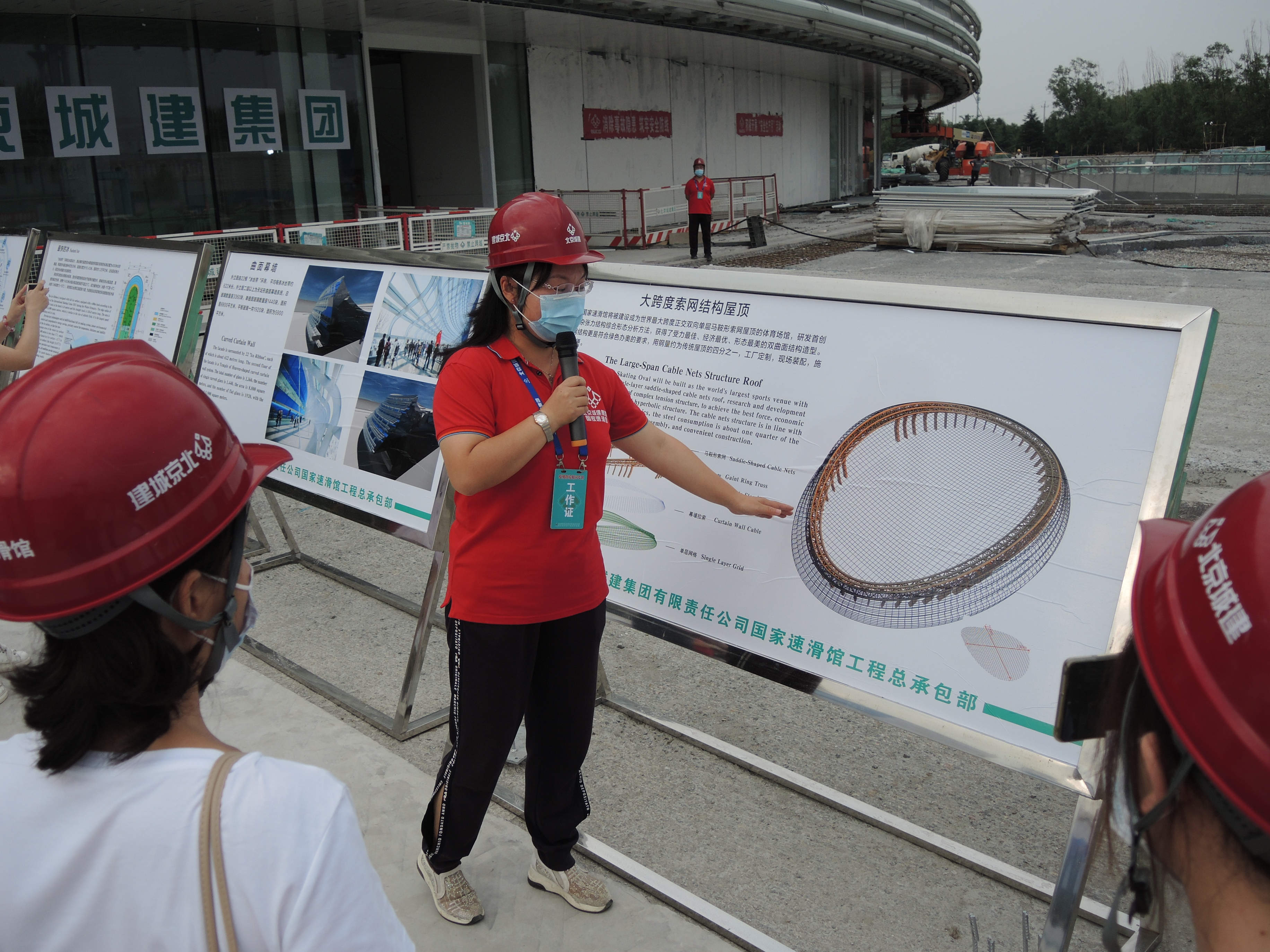 國家速滑館項目負責人張怡向記者介紹場館工程建設的核心技術