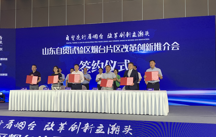 自去年8月31日正式掛牌成立,山東自貿試驗區煙台片區即承擔著「為國家試製度,為地方謀發展」的戰略使命。去年10月17日,在韓國首爾,山東米美生物科技有限公司的韓方投資者白娟秀女士,手捧山東自貿試驗區煙台片區公司營業執照興奮地說,「不用出國,就拿到了營業執照,還收到一套免費刻制的印章,讓我們以後到煙台投資充滿了信心!」這是煙台自貿片區在海外頒發的首張營業執照,也是政務服務走出國門,實現跨國審批的首創性探索。