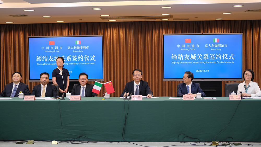 江蘇省南通市與義大利錫耶納市締結友好城市關係視頻簽約活動