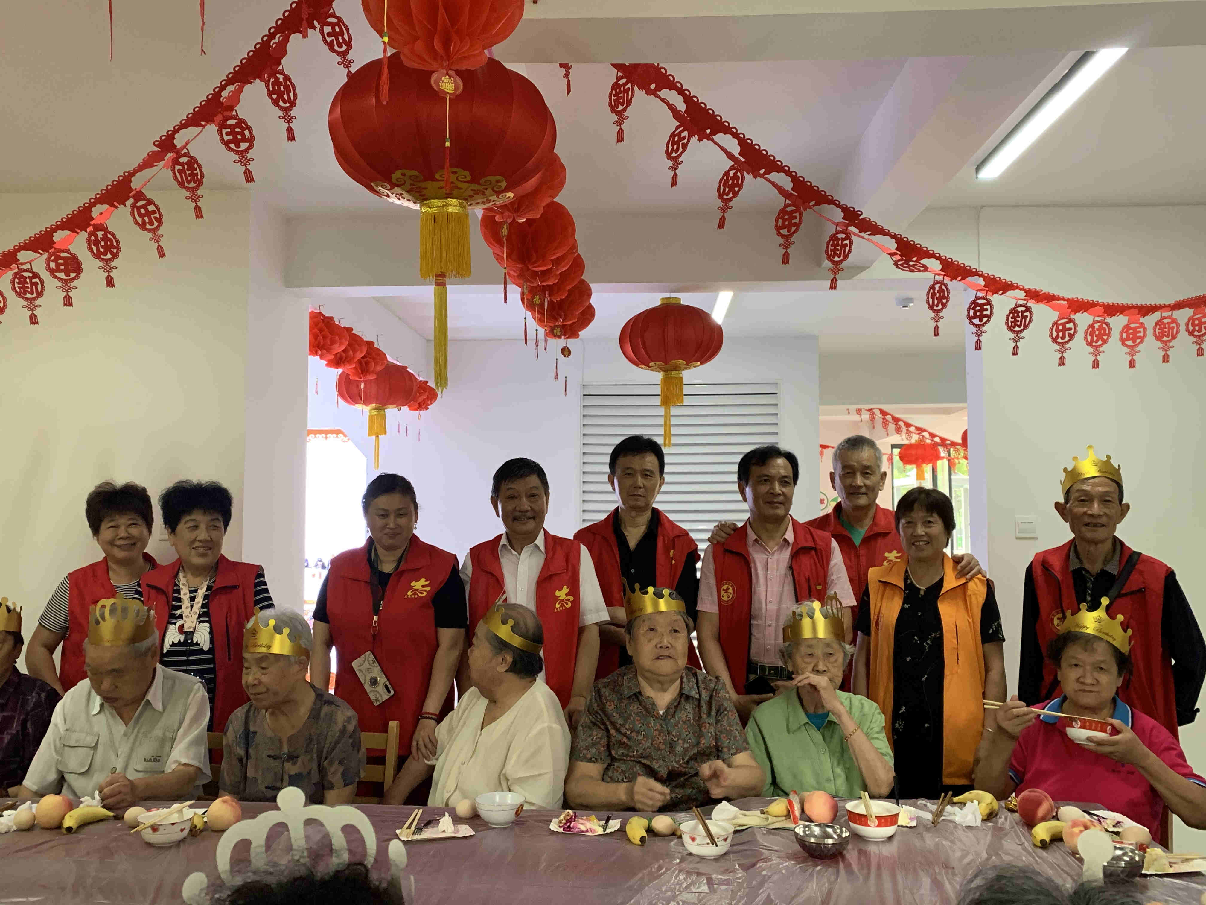 阮懷珍(後排左二)帶領居民志願者為社區高齡老人過集體生日