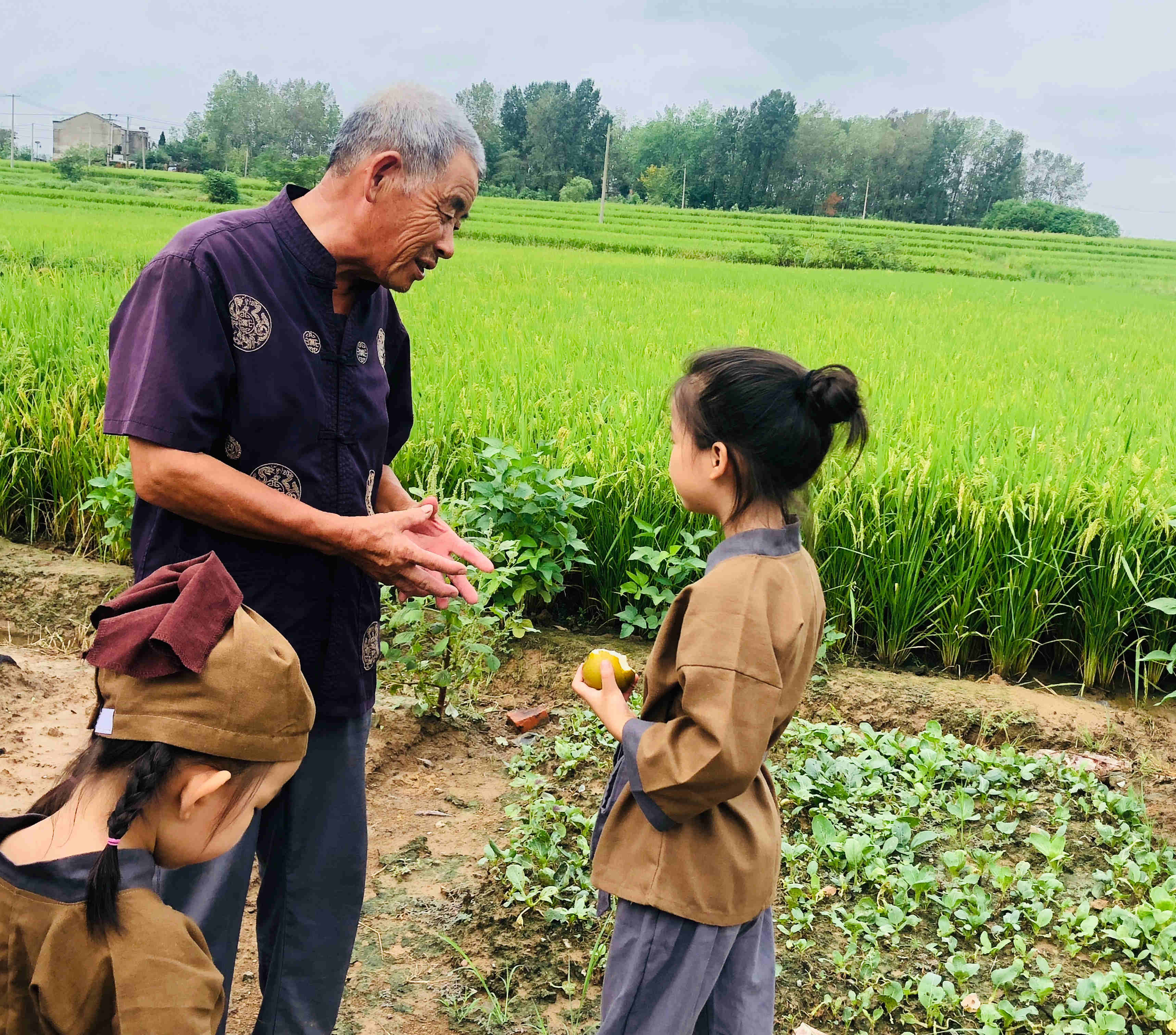 該活動邀請天河村村民李寬然爺爺在稻田邊為小朋友講解水稻的生長及收穫的過程,讓他們深刻體會到了農民伯伯辛勤和糧食的來之不易。7歲的點點小朋友說:「原來,我們吃的大米飯是這樣種出來的,我們住在城市裏,吃着農民伯伯們種的糧食,要愛惜,因為他們種糧食很辛苦。」