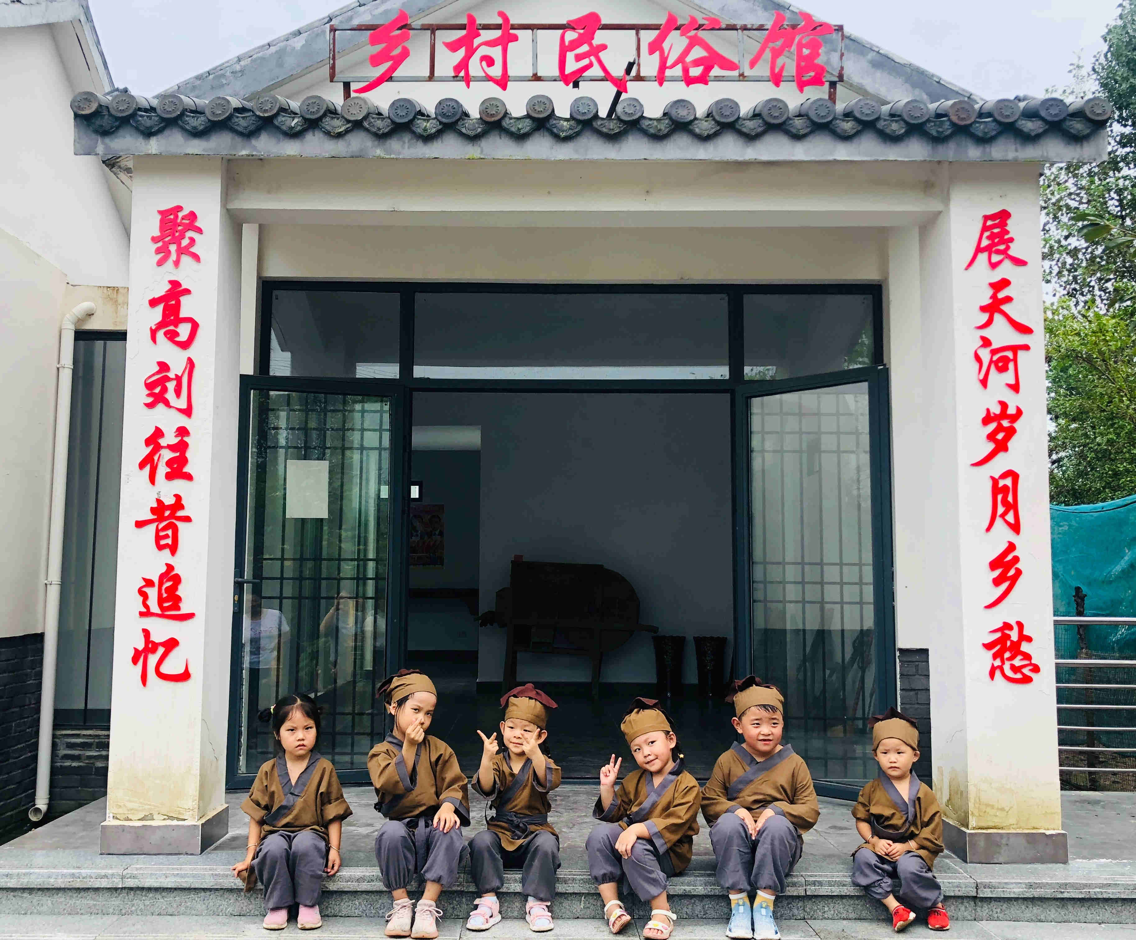聽完老爺爺講解後,小朋友們又興奮地參觀天河村鄉愁館。他們對館內陳列的老物件充滿了好奇:「阿姨——阿姨——這個像車子的是什麼?」「阿姨——阿姨——我好像在電視上看見過這個。」吹稻穀的風車、犁地的木耙……