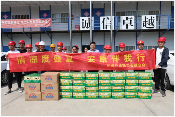 一聲聲的問候,一句句的感謝,工人們臉上綻放着幸福的笑容,這裏面蘊含着愛的溫度,這裏還有人惦記着他們,在想着他們。園區領導的關心和慰問,極大地鼓舞了一線工人的工作熱情和鬥志。大家紛紛表示,要繼續發揚不怕苦、不怕累的優良傳統,克服高溫天氣帶來的各種困難,全身心投入到園區建設中。