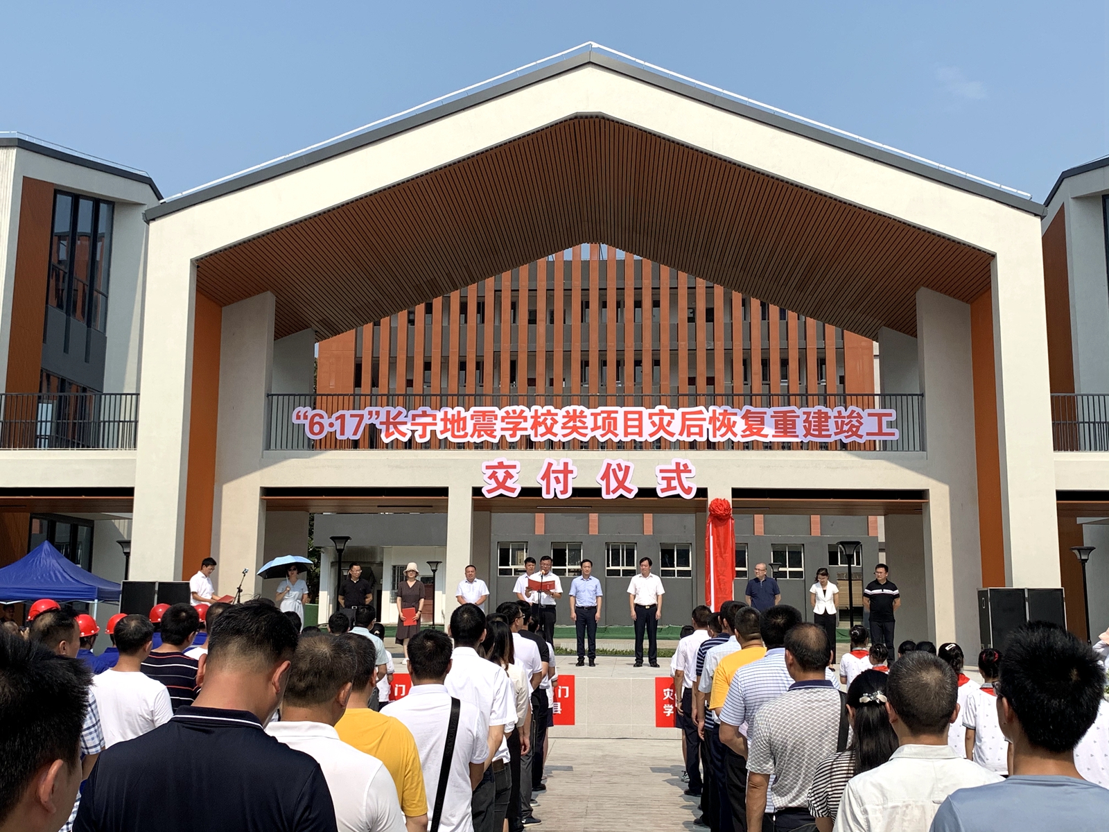【香港商報網訊】記者 梅超 報導:8月28日下午,四川省宜賓市長寧縣委、縣政府在中國五冶承建的長寧縣雙河鎮中學舉行「6·17」長寧地震災後重建學校類項目竣工暨全縣學校開學儀式,標誌着中國五冶在長寧承建的11所災後重建學校項目全部圓滿交付。宜賓市、長寧縣有關領導,中國五冶集團代表,以及學校、教師、家長和學生代表現場見證。