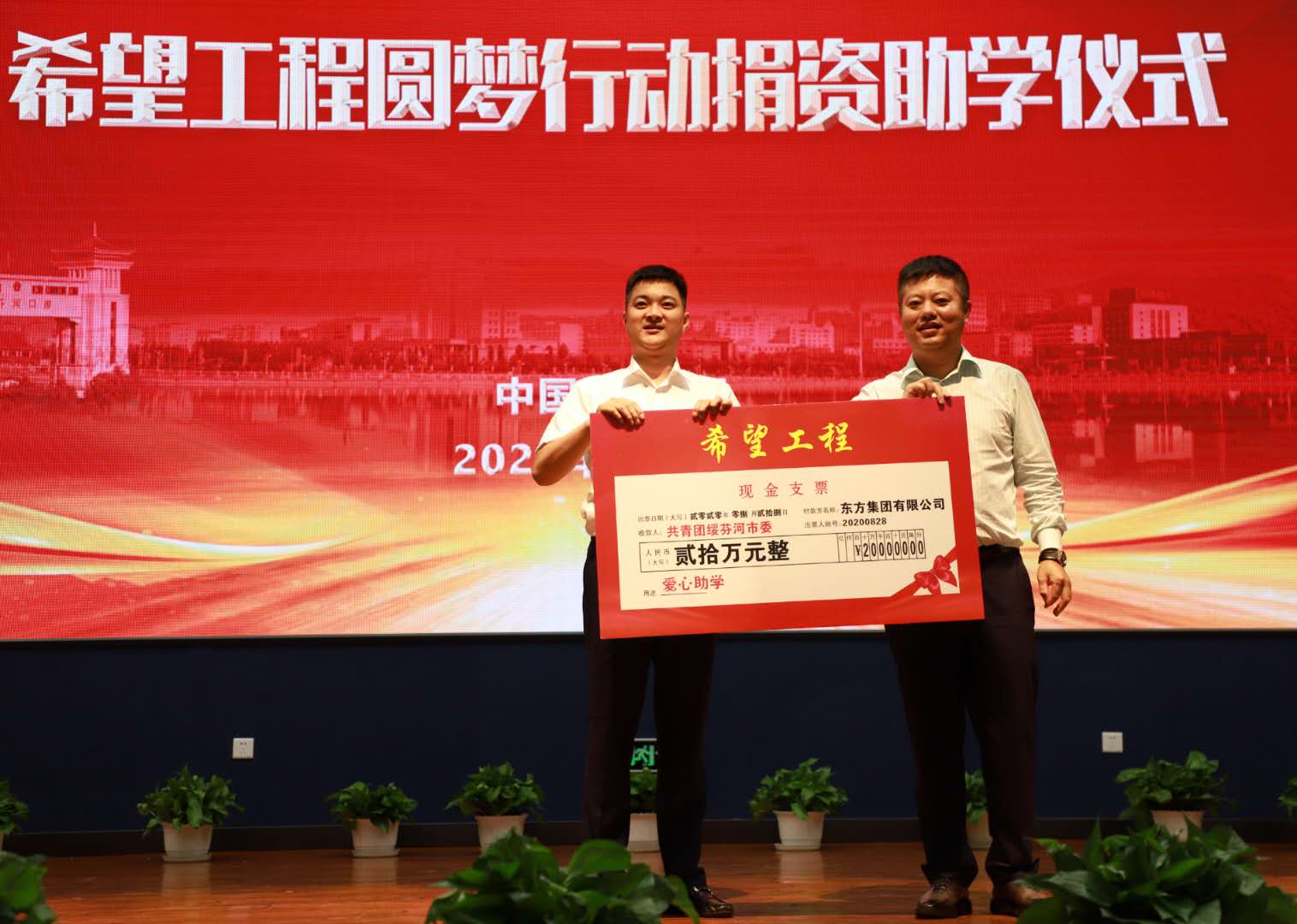 厚德在心、質樸在行。活動中東方集團向綏芬河共青團「金秋助學」希望工程捐贈人民幣20萬元,支持綏芬河市家庭經濟困難且品學兼優的寒門學子圓夢大學。