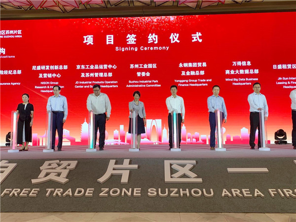 會議現場,蘇州市委常委、園區黨工委書記吳慶文表示,掛牌一年來,蘇州自貿片區累計推出改革創新舉措132項,形成創新成果案例66項,其中省級以上「首創率」60%,2項獲評國務院服務貿易創新試點「最佳實踐案例」,14項在全省示範推廣;直接帶動新增市場主體2.9萬餘家,註冊內資852億元;新設外資企業319家,實際利用外資17.07億美元,同比增長131%;新增高質量科技項目948個,其中生物醫藥、納米技術應用、人工智能三大新興產業項目佔比81%;新增上市企業14家、金融類機構61家、備案境外投資機構70家。國際國內資本堅定看好蘇州自貿片區,掛牌一年來,平均每個工作日設立外資企業1.3家、引進科技項目3.8個、新增市場主體116個,蘇州自貿片區正加速成為全國開放底色最鮮明、產業優勢最突出、市場主體最活躍、創新動能最強勁的自貿片區之一。