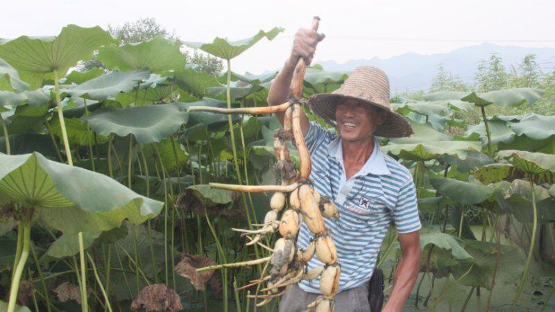 【香港商報網訊】“地下藕,地上菜。秋後一算賬:藕豐收,菜不少!”8月24日,安徽黃山市黟縣宏村鎮古溪村綠峰蔬菜專業合作社迎來了大豐收,村兩委帶著村民們挖藕、網魚、種茄子,幹得正歡。古溪村村主任汪劍鋒向记者介紹,“一畝地,種蓮藕,約收蓮藕900公斤,收入8000元;我們現在是在池塘裏套種蓮藕、黑魚後,高產套種田畝產蓮藕1100公斤,黑魚200斤,收入能達到13000元左右,這可不是我吹牛,是鎮裏邀請的農技專家對我們蓮藕套種進行現場測產驗收的結果!”