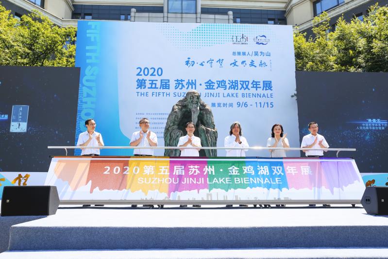 蘇州市委常委、蘇州工業園區黨工委書記吳慶文,中國美術館館長吳為山,江蘇省委宣傳部副部長、省政府新聞辦主任楊力群,蘇州市委常委、蘇州市委宣傳部部長金潔,蘇州市副市長王颺,蘇州工業園區黨工委副書記、管委會主任丁立新共同為第五屆蘇州·金雞湖雙年展啟幕