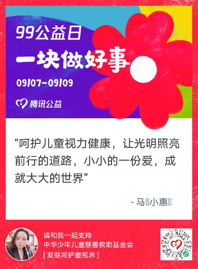 項目簡介:中華兒慈會彩雲助苗友益愛心專項基金在騰訊公益平台發起《友益呵護童視界》公益項旨在通過走進社區、學校,對兒童青少年開展免費視力檢測、用眼衛生培訓、送視力手冊等公益活動,宣傳近視防控科普知識,幫助孩子養成健康用眼的好習慣,從而降低孩子的近視率。(朱開芝 馬星羽)