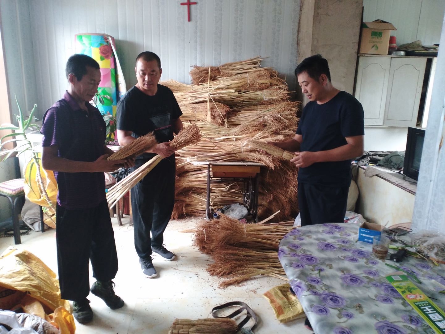萬事開頭難,做什麼?很長一段時間成了王殿仁的心病。在工作隊走訪時,了解到他有自己創業增收的想法,他懂養豬,就幫助他採購6頭豬,養了一頭母豬,兩頭「後備」,三頭育肥,很快發展壯大,每到年關節日,自己養的笨豬都會在本村銷售一空;他懂孵化,就幫他聯繫採購優質種蛋,在家裏孵化雞雛、鴨雛,僅一個夏天就孵化出500多隻雛,被訂購一空。但這都是小打小鬧,季節性限制大,無法持續增收。在與他的進一步溝通中,了解到他還有扎笤帚的手藝,每到閒時,都會紮上幾把,送給親戚朋友使用。笤帚每家每戶都會使用,市場前景廣闊,並且勞動強度不大,可以利用業餘時間,不耽誤正常耕作,這與工作隊的想法一拍即合。