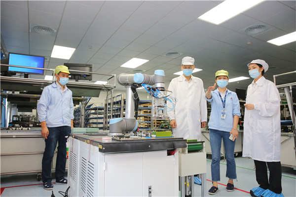 佛山海關駐順德辦事處關員現場查看工業機械人在保稅維修業務中的應用(攝影:盧澄禧)