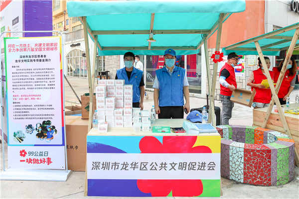 據悉,為深入推進第六屆全國文明城市創建,高質量完成龍華區新時代文明實踐中心省級試點區建設工作,龍華區文明辦聯合區民政局在9月9日至9月15日在108個居委會開展以「講文明、做慈善、暖龍華」為主題的社區文明周「五個一」系列主題活動。即:舉辦一場文明慈善主題募捐活動;組織一次社會主義核心價值觀入戶宣傳;開展一系列「文明健康有你有我」宣教活動;舉辦一次「潔淨家園」社區大清掃活動;組織一場文明實踐活動。活動以文明素養提升為目的,以慈善活動為紐帶,將社區資源連接起來、激活起來,積小善、成大愛,打造社區互助、文明友愛的溫馨家園。