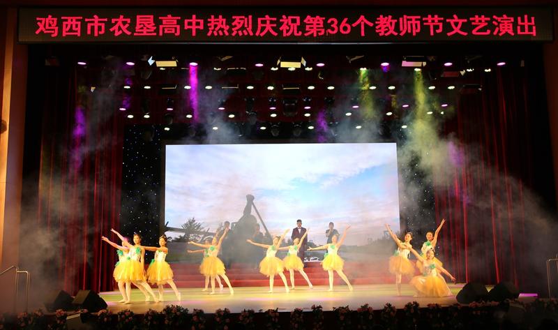 【香港商報網訊】9月10日,黑龍江省雞西市農墾高中慶祝第36個教師節「築夢路上」文藝演出在校文化中心舉行,師生們用豐富多彩的節目為全體教師送上節日的祝福。校長趙鐵石率黨政班子成員及中層幹部觀看演出。