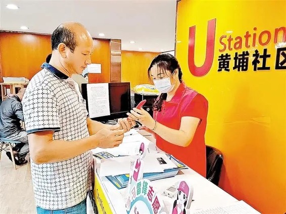 在新橋街道黃埔社區U站,值班義工面對前來諮詢和辦理電動車備案登記的居民,耐心地講解備案流程和注意事項。雖是工作日,但前來辦理電動車備案的居民還是特別多。「對於個別不會操作手機的居民,我們會先手把手指導,再交給工作人員現場核實和引導學習交通安全視頻。」說起備案流程和操作方法,最近一直在U站的義工劉芙蓉如數家珍。與此同時,在新橋、黃埔、萬豐等社區進出口,小區物業管理處、社區U站等人流密集處,新橋街道團工委、義工聯組織義工同社區工作人員一起,採取擺攤設點的形式,協助社區居民進行電動車備案登記。除協助做好電動車備案登記外,新橋義工還於每天早晚高峰期,在各大十字路口開展交通疏導,勸導過往的市民騎行佩戴安全頭盔,不走機動車道,禮讓行人。