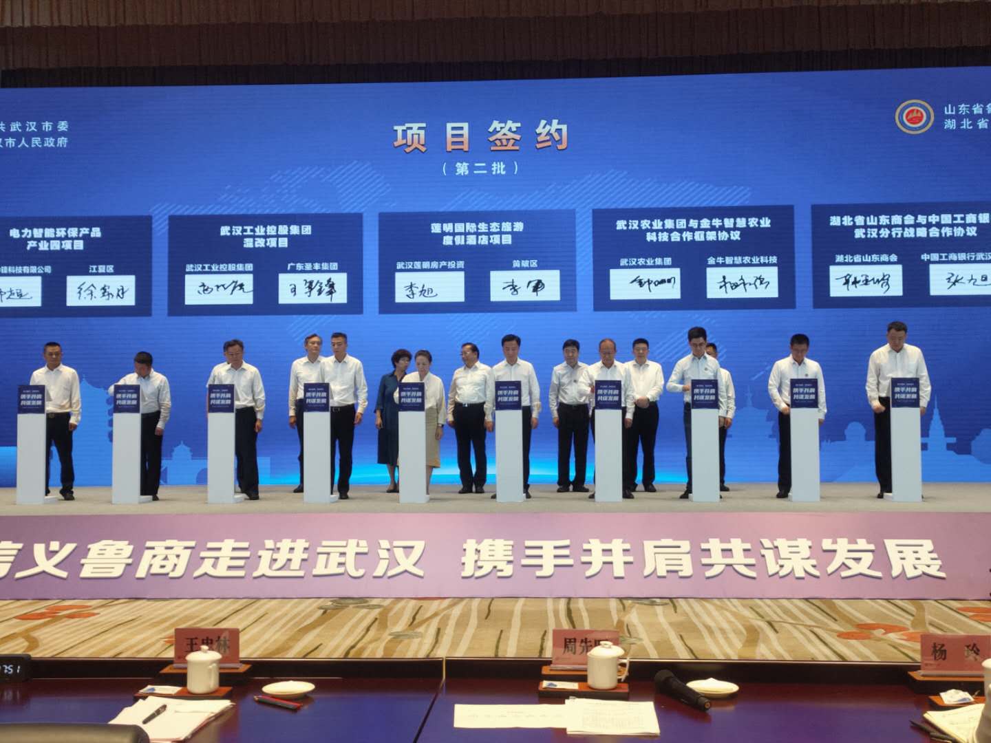 【香港商報網訊】9月12日,來自山東省、湖北省、山西省及上海市、重慶市、西藏自治區、寧夏自治區、澳門等23個省、市、自治區及特別行政區的百位企業家與魯商代表相聚武漢,共同參加由中共武漢市委、武漢市人民政府、山東省工商聯合會主辦,武漢市商務局、湖北省山東商會承辦的「知名魯商 走進武漢」活動,並於當日簽約項目15個,總投資241億元。