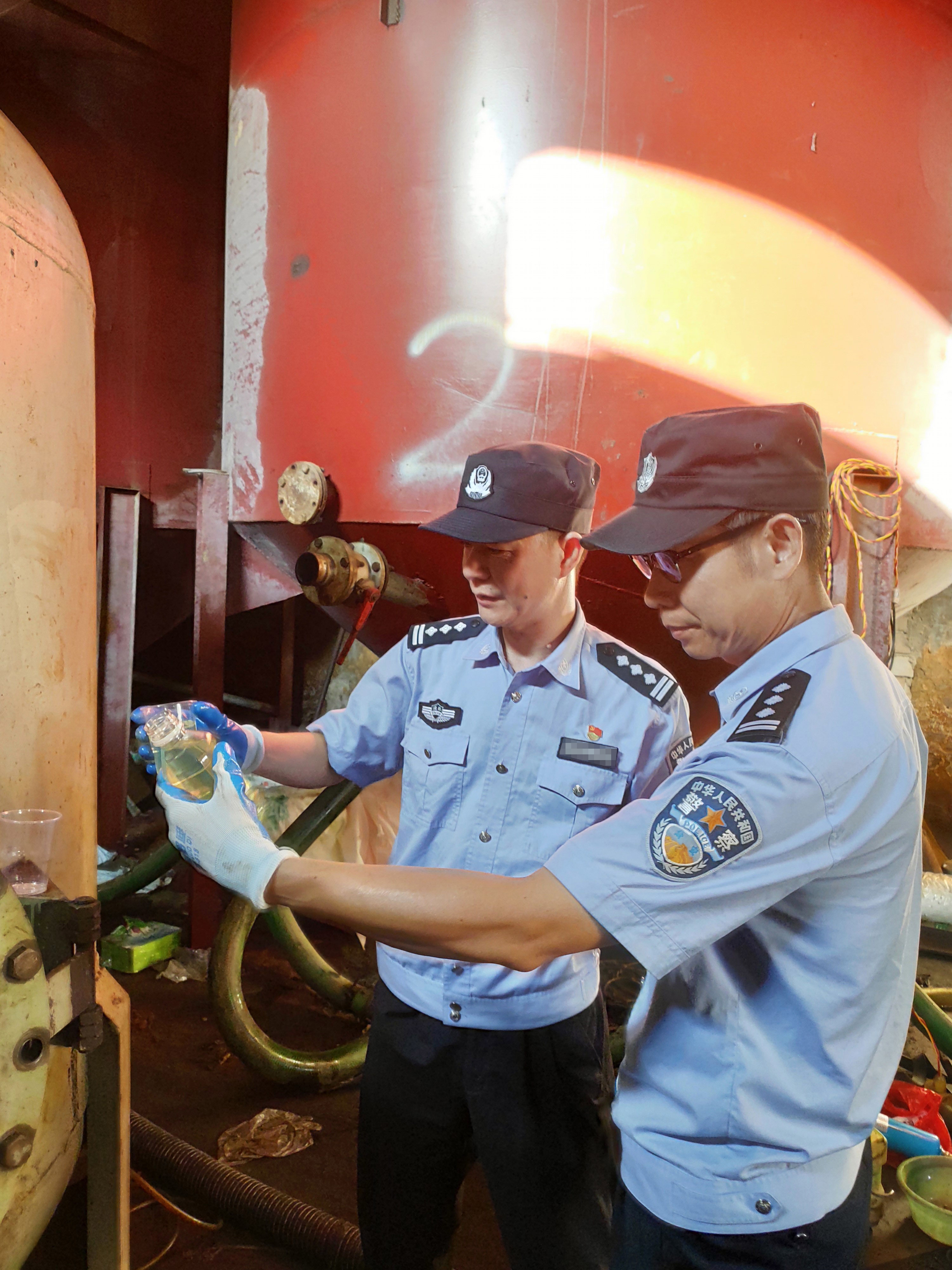 8月19日凌晨,肇慶緝私分局根據線索獲悉一輛油罐車在珠江口「三無」船舶上偷卸過駁成品油上岸,即將運至粵西一地下工廠進行脫色銷售,海關緝私警察採取「追源頭」「掏窩點」的戰術戰法,一路追蹤該運輸車輛至肇慶四會與佛山三水交界區域,發現並搗毀了一個非法走私、儲存和銷售成品油窩點,查獲涉嫌走私進口的成品油46噸及儲油設備一批。
