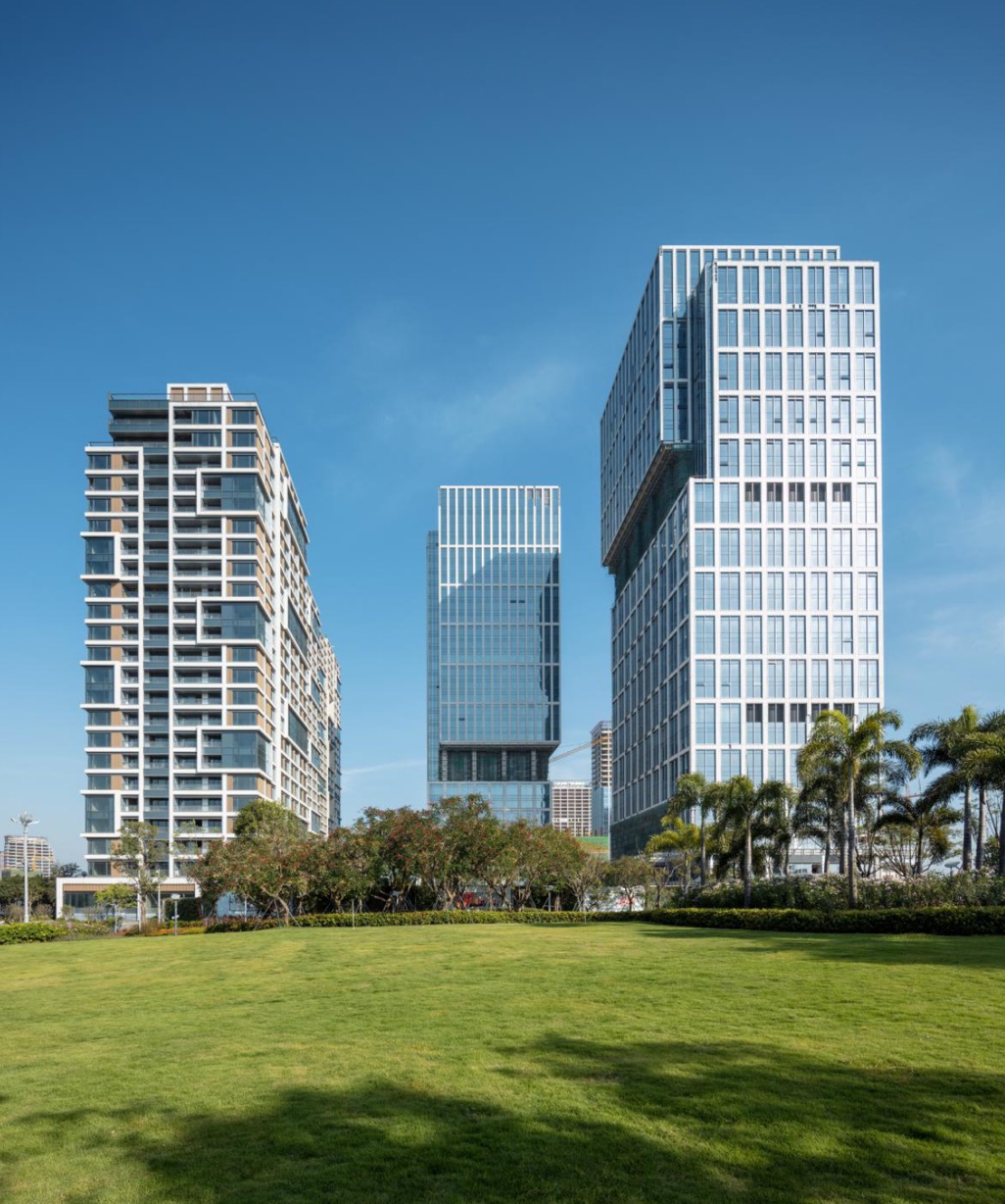 不同於內地,香港建設模式最大的特點是設計師負責制,整個項目從頭到尾,設計師要進行統籌考慮。嘉里是從2015年、2016年、2017年分三次在前海拿地,地塊比較大,香港建設模式也充分發揮其所長。記者在前海嘉里中心租賃展示廳望出去,不論是遠處的媽灣港,還是近處的桂灣先導區,都是一幅幅美麗的畫卷,由此也可以看出嘉里的設計果然獨具匠心。段林楠很自豪地說,嘉里在深圳前海與福田的項目,他都親身經歷過,從時間上來說相差十年,前海項目是福田項目的升級版。其已取得美國LEED的鉑金級預認證,國家綠色建築三星級設計標識認證,並按照健康研究院WELL金級認證標準設計與建造。