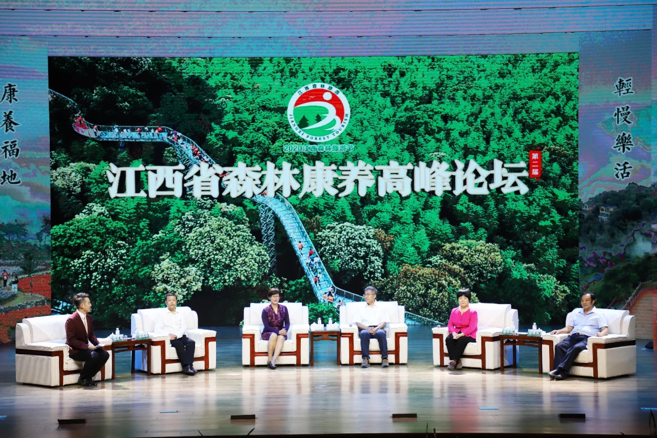 全國森林康養專家庫專家、國家林業和草原局調查規劃設計院處長喬永強,江西農業大學林學院教授、博士生導師劉苑秋,江西中醫院教授、主任中醫師蔣小敏,四川省洪雅縣森林康養文化藝術中心主任、玉屏山森林康養基地綜合管理處處長巫柄松,大余章源生態旅遊有限公司董事長唐向陽等五位嘉賓深入探討了在“綠水青山就是金山銀山”的理念指引下,在實施健康中國戰略中森林康養產業高品質發展的實現路徑。在圍繞森林康養內涵、作用功效、發展態勢、戰略定位以及森林康養基地建設、產品設計等三個環節的對話訪談中,與會嘉賓分享了各自在政策標準制定、理論技術研究、中醫康養結合、專案操作實例等方面的精彩觀點,並與現場觀眾進行了交流互動,為江西森林康養產業把脈問診、建言獻策,助推江西省森林康養產業健康發展。