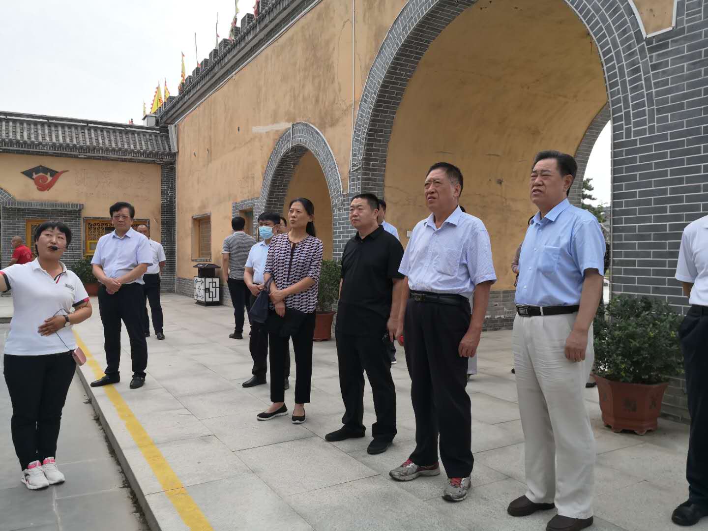 下午4點,調研組一行抵達位於豫陝晉三省交界的函谷關。函谷關始建於春秋戰國,是我國歷史上建置最早的雄關要塞之一,是兵家必爭的戰略要地,也是我國古代偉大的思想家、哲學家老子著述道家學派開山巨著《道德經》的靈谷聖地,以名人(老子)、名著(《道德經》)、名關(函谷關)留芳青史,聲播海外。自1992年以來,函谷關每年都要舉行老子誕辰紀念活動,屆時海內外旅遊者前來朝聖,盛況空前。函谷關景區面積16.9平方公里,主要景點有關樓、函關古道、太初宮、大道院、道家養生園、藏經樓、瞻紫樓、雞鳴台、碑林、蠟像館、博物館等20餘處。重修後的函谷關關樓巍然聳立,氣勢雄渾,是一處融道家文化和軍事文化於一體的人文遊覽區。