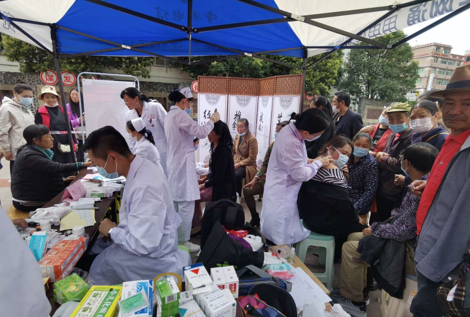 9月10日,醫療隊在九龍縣呷爾鎮民族廣場開展結對幫扶義診活動。針對當地民眾常見疾病,醫療隊對參加義診的民眾進行把脈問診、測量血壓、血糖,開展針灸、理療等服務,耐心解答民眾提出的有關身體健康、心理狀況等問題,對身體不適的民眾予以健康飲食、合理用藥、疾病診斷等指導建議,並向有需求的民眾免費發放藥品。
